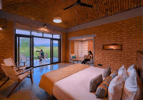 VIRYA WILDLIFE TOURS RESORT offers a peaceful sojourn in the lap of nature while enveloping you with contemporary conveniences. Our Luxury resort in Moharli Taboba comprises of 9 Mud Block Cottages and 6 Luxurious Tents and a outdoor swimming pool of 800 sqft with a baby pool enclosed by the Deck area around the pool. Vrruksh Eco stay is situated at the boundary of the core area of the forest, approximately 8 mins away from the Moharli safari Gate, approximately 10 mins away from the Junona safari Gate and approximately 16 mins from Dewada, Adegaon and Agarzari safari gate at Tadoba Andhari Tiger Reserve, making it an felicitious stay for your next safari destination.
